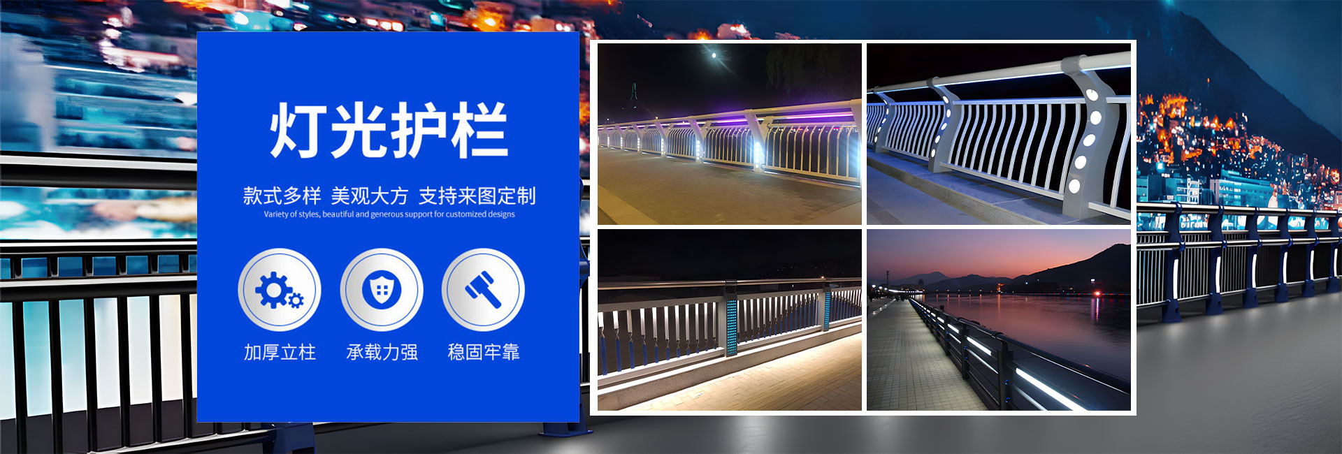 主營:不銹鋼護欄,燈光護欄,防撞護欄,河道護欄,景觀護欄,橋梁護欄,不銹鋼復合管護欄,防撞立柱,護欄立柱,鋁合金護欄,木紋轉印護欄,人行道護欄,繩索護欄
